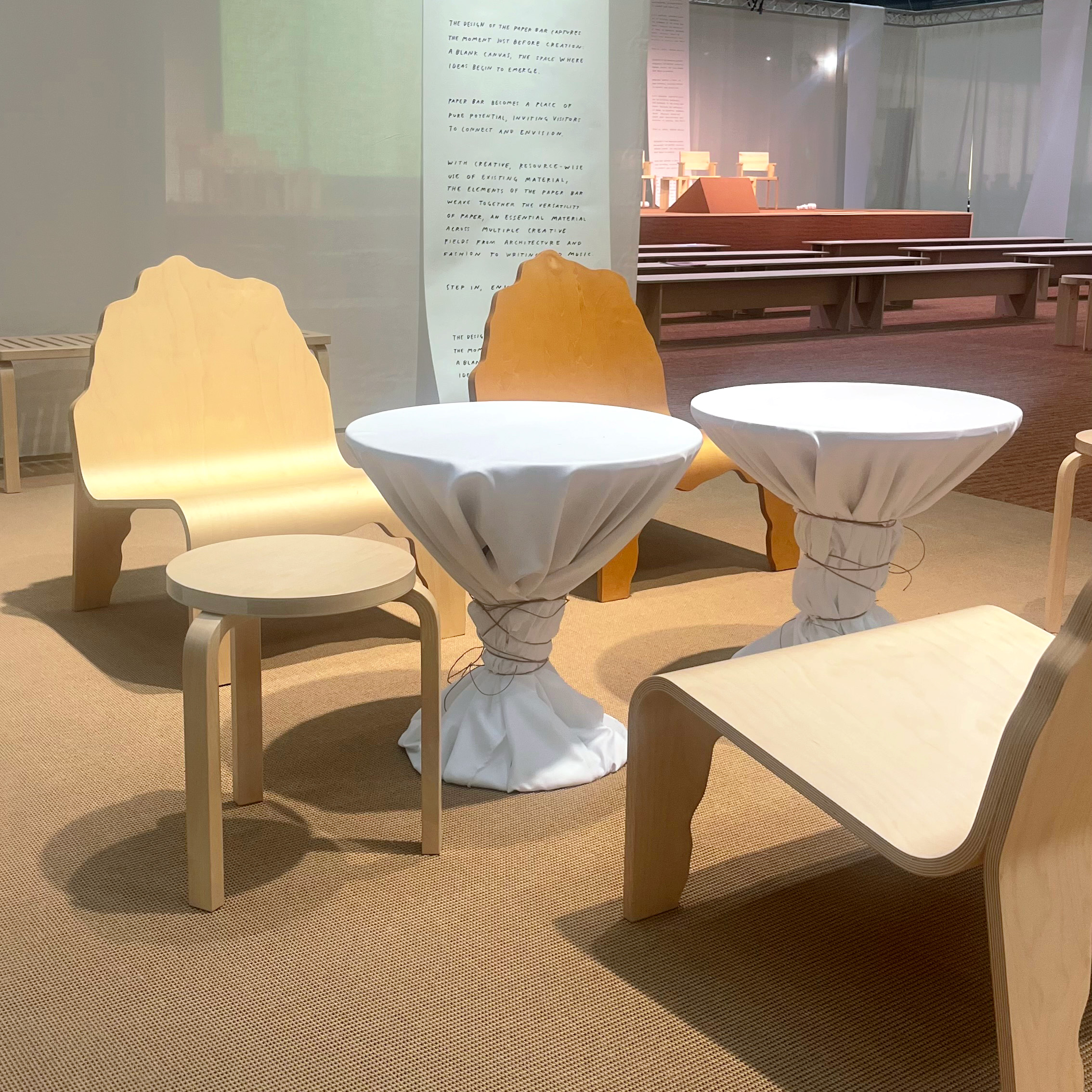 ”Olemme ylpeitä voidessamme esitellä Havun Stockholm Furniture Fairin Paper Barissa. Havu on valmistettu kokonaan 100-prosenttisesti Ruotsista peräisin olevasta paperilangasta, ja sen pohjamateriaali on kierrätettyä EVAPolytex-huopaa. Havu on suunniteltu kierrätettäväksi myös elinkaarensa lopussa, ja se edustaa täydellistä tasapainoa kestävyyden ja tyylin välillä.